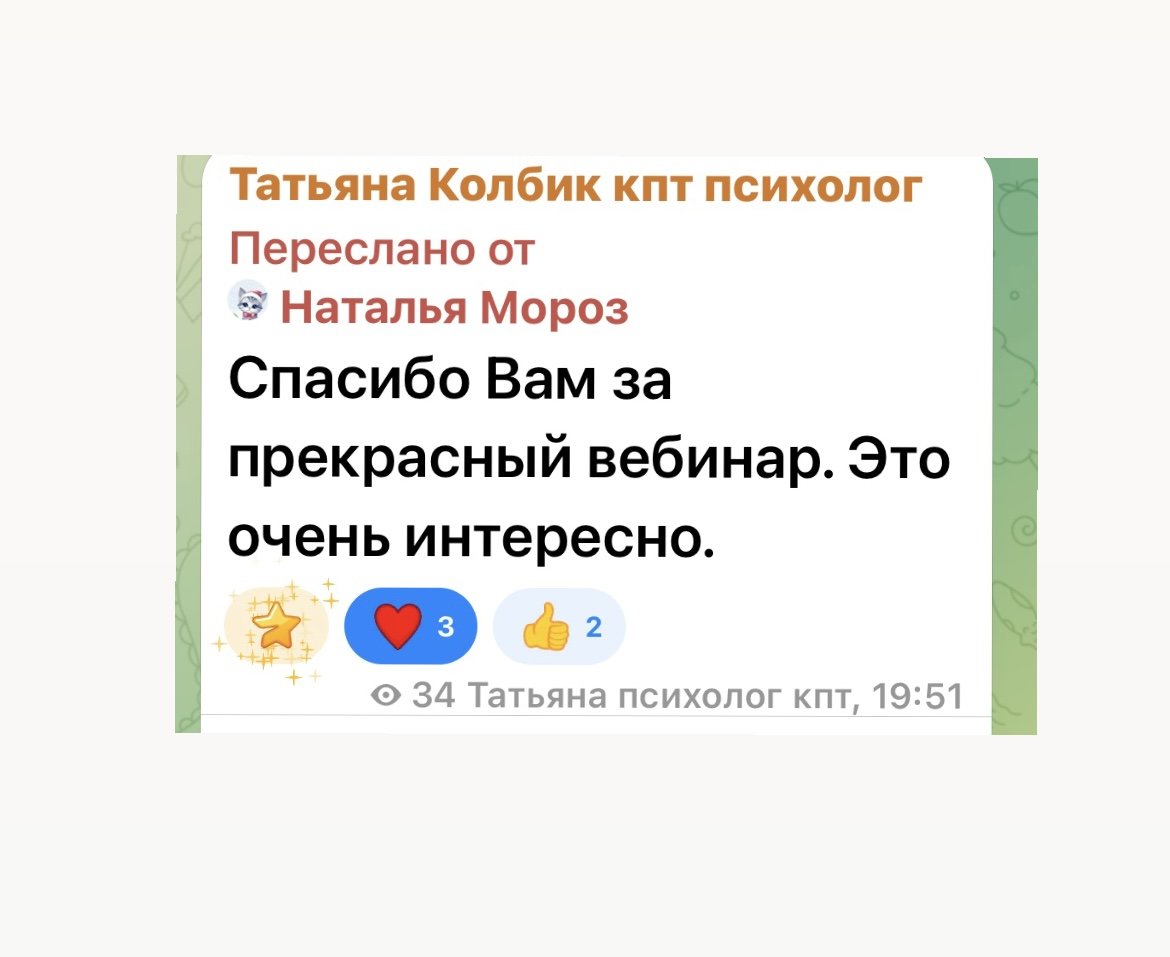 С помощью КПТ и РЭПТ я избавилась от таких недугов, как: головная боль напряжения , шаткость походки, хронической боли в шее, затылке ,частой тахикардии, периодического расстройства сна, быстрой утомляемости, панических атак, страха за собственное здоровье , ушла от приема транквилизаторов, миорелаксантов. Это направление я пропустила через себя и знаю, как оно эффективно работает. Я доверяю КПТ и РЭПТ подходам на 100%.